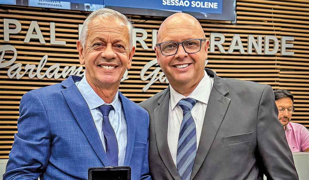 Na noite de quinta-feira, dia 19 de fevereiro, na sessão solene em homenagem aos 289 anos do da cidade de Rio Grande, a Câmara Municipal de Vereadores fez a entrega da Moeda Institucional à prefeita Darlene Pereira (PT) e ao vice-prefeito Paulo Renato Mattos Gomes, o Renatinho (PSD). A homenagem foi conduzida pelo presidente da Câmara Municipal de Rio Grande, vereador Rogério Gomes (Cidadania), que destacou a importância do reconhecimento às autoridades que contribuem para o desenvolvimento da cidade.