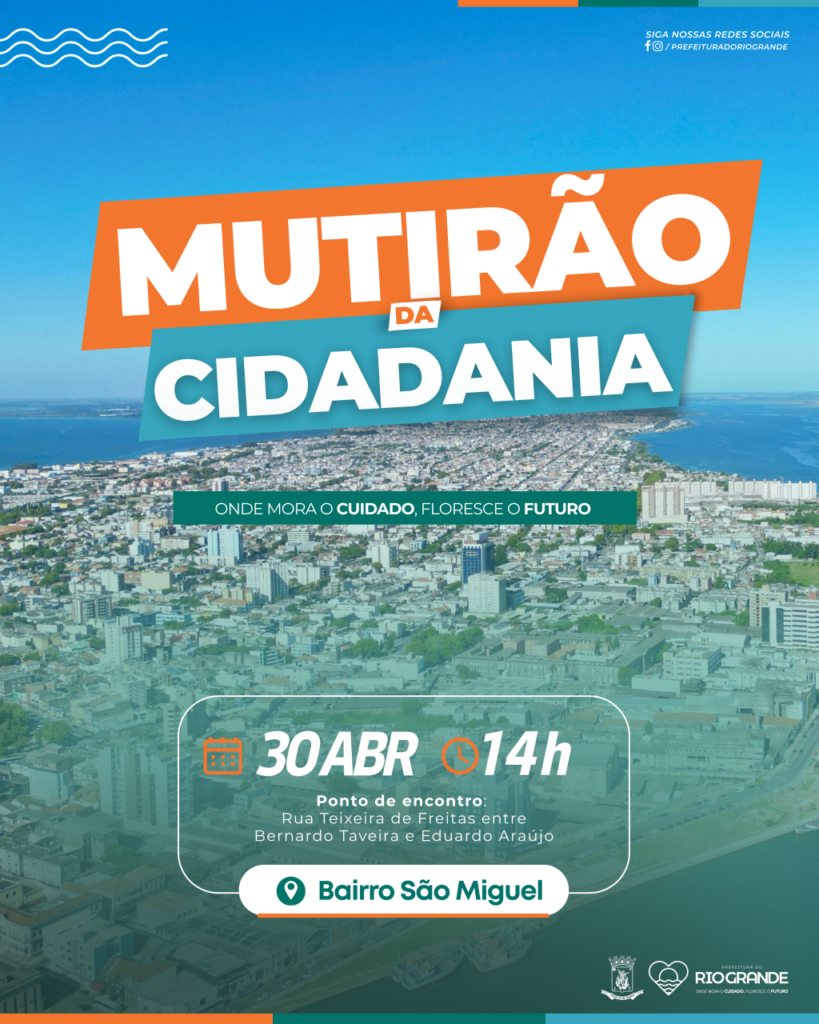 O Mutirão da Cidadania chega ao bairro São Miguel nesta quinta-feira, 30 de abril, na terceira edição de 2026 da iniciativa promovida pelo Executivo Municipal. A ação leva serviços de diferentes secretarias e órgãos da Prefeitura às comunidades, ampliando o acesso da população a atendimentos e orientações.
